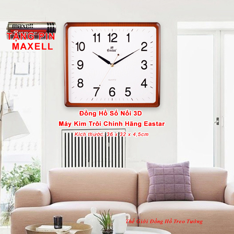 - Đồng hồ Treo tường Cao Cấp KIM TRÔI NHẬT EASTAR, Mặt Số Chữ Nhật Dập Nổi 3D.