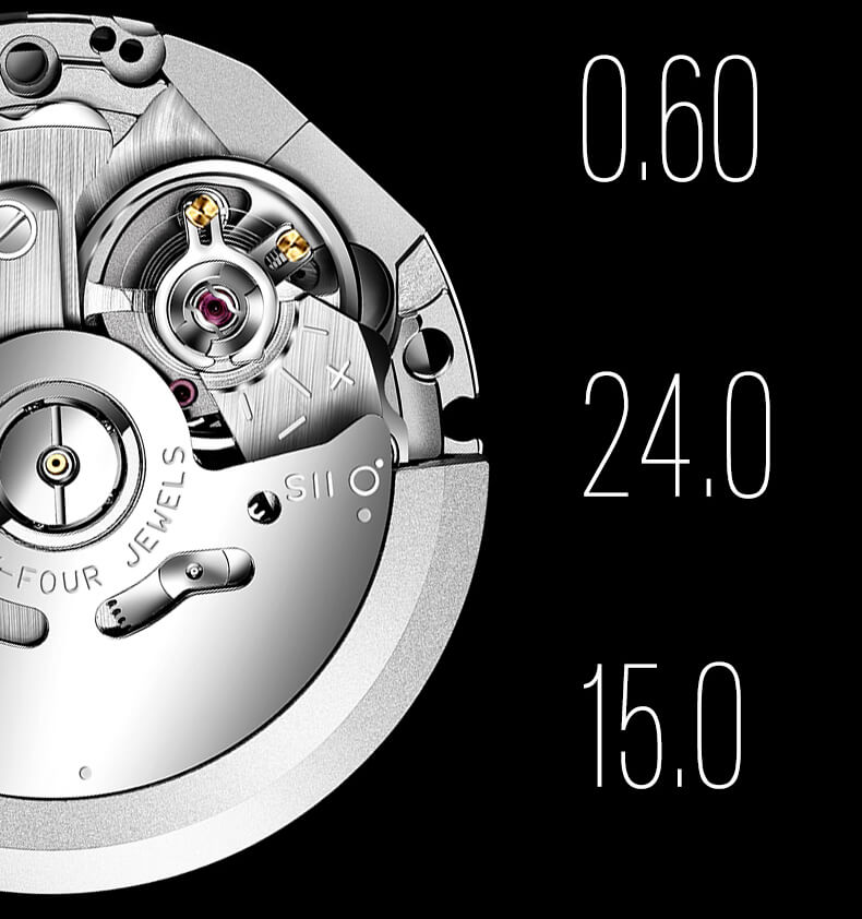 Máy Seiko NH36A bền bỉ: Độ chính xác cao - hoạt động bền bỉ, ổn định, hiện đại, sở hữu 24 chân kính bảo vệ khớp nối, tần số 21.600 giúp đồng hồ vận hành bền bỉ, mượt mà.