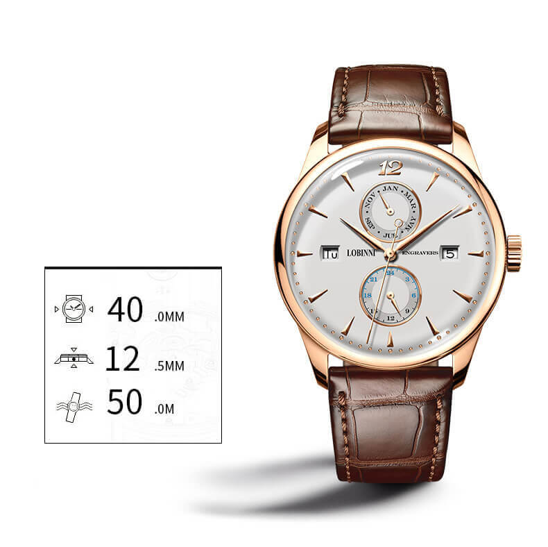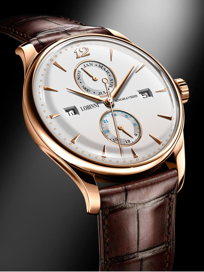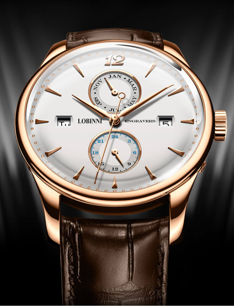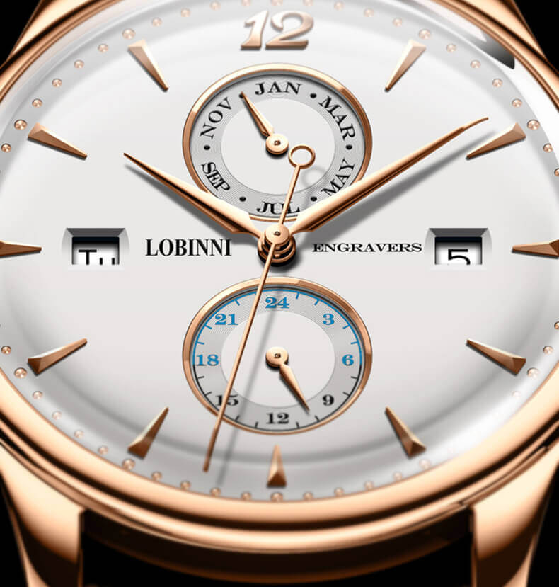 VẺ ĐẸP CỔ ĐIỂN: Kiểu số cọc nổi và Số 12 đã tạo nên sức hút mạnh mẽ cho Lobinni. Nét đẹp mang phong cách cổ điển nhưng rất hợp với phong thái của các quý ông thời đại.