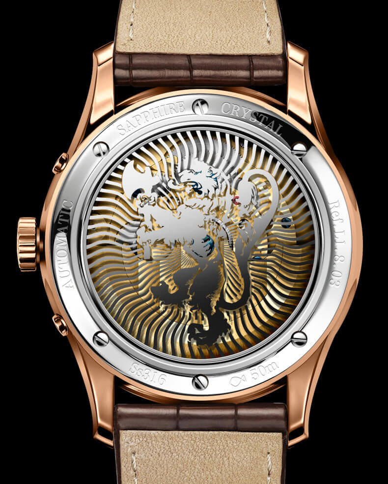 CẢM HỨNG ĐẾN TỪ SẮC MÀU: Với tông màu vàng hồng chủ đạo, cực kì sang trọng cho quý ông sở hữu. Nổi bật nên hình ảnh mặt trăng, mặt trời cực kì độc đáo giúp người đeo xác định giờ ngày đêm.